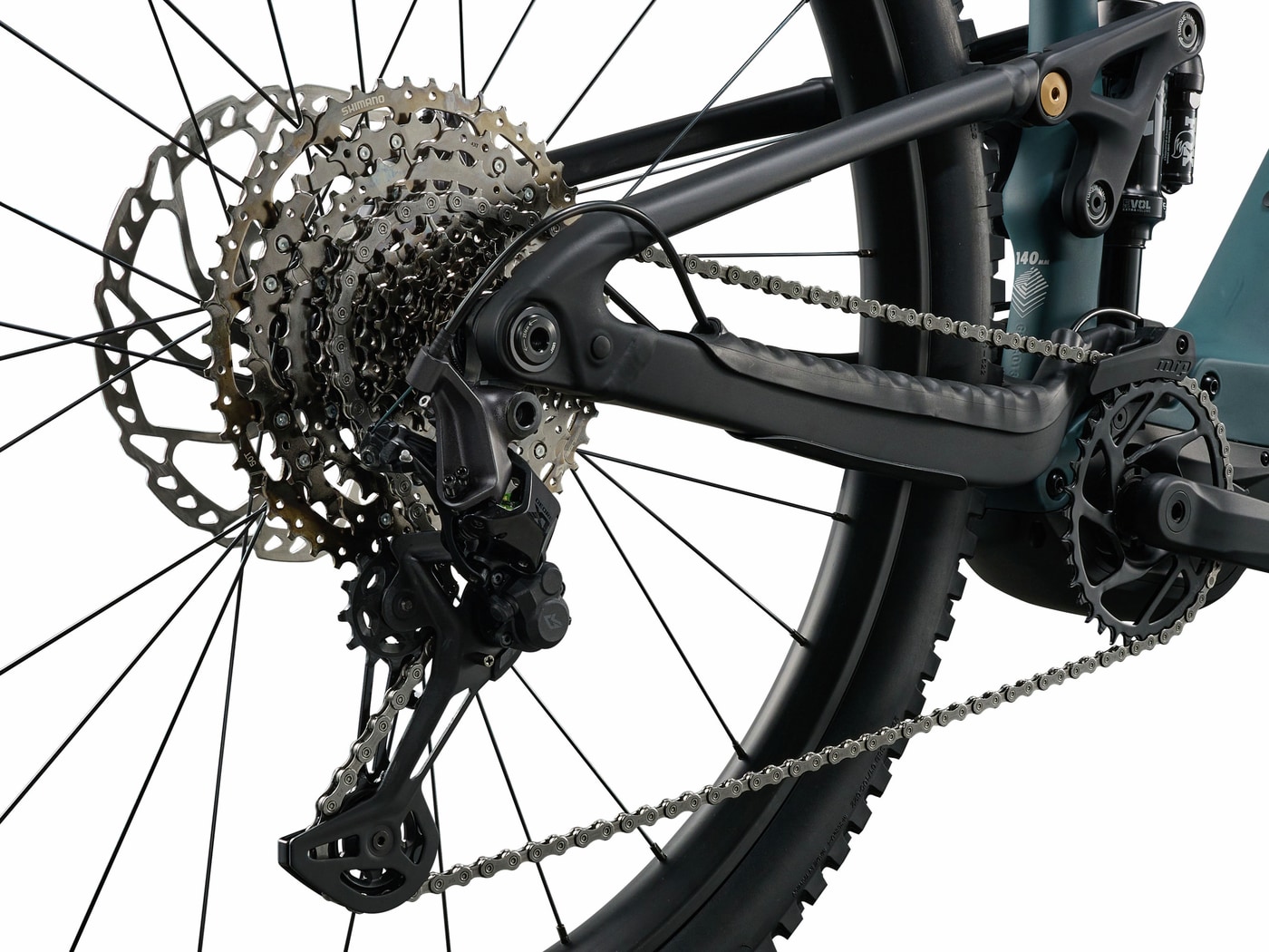 Med 150 mm vandring foran og 140 mm bak får du en sykkel som håndterer røtter, stein og ujevnt terreng med god flyt og stabilitet. Fox 36 Rhythm gaffel og Fox Float X bakdemper sørger for presis demping og god kontroll på krevende stier.