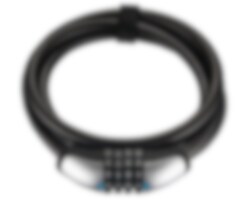 Låsen har en kraftig, fleksibel selvopprullende vaier (10–15 mm) med kombinasjonslås som kan stilles inn selv. Sinkdeksler gir ekstra slagbeskyttelse, og vinylbelegg hindrer riper. Fire fluoriserende tall gir 10 000 mulige kombinasjoner. Leveres med et brukervennlig hurtigfeste. Merk: Ingen sykkellås er helt tyverisikker – velg lås etter område og behov.