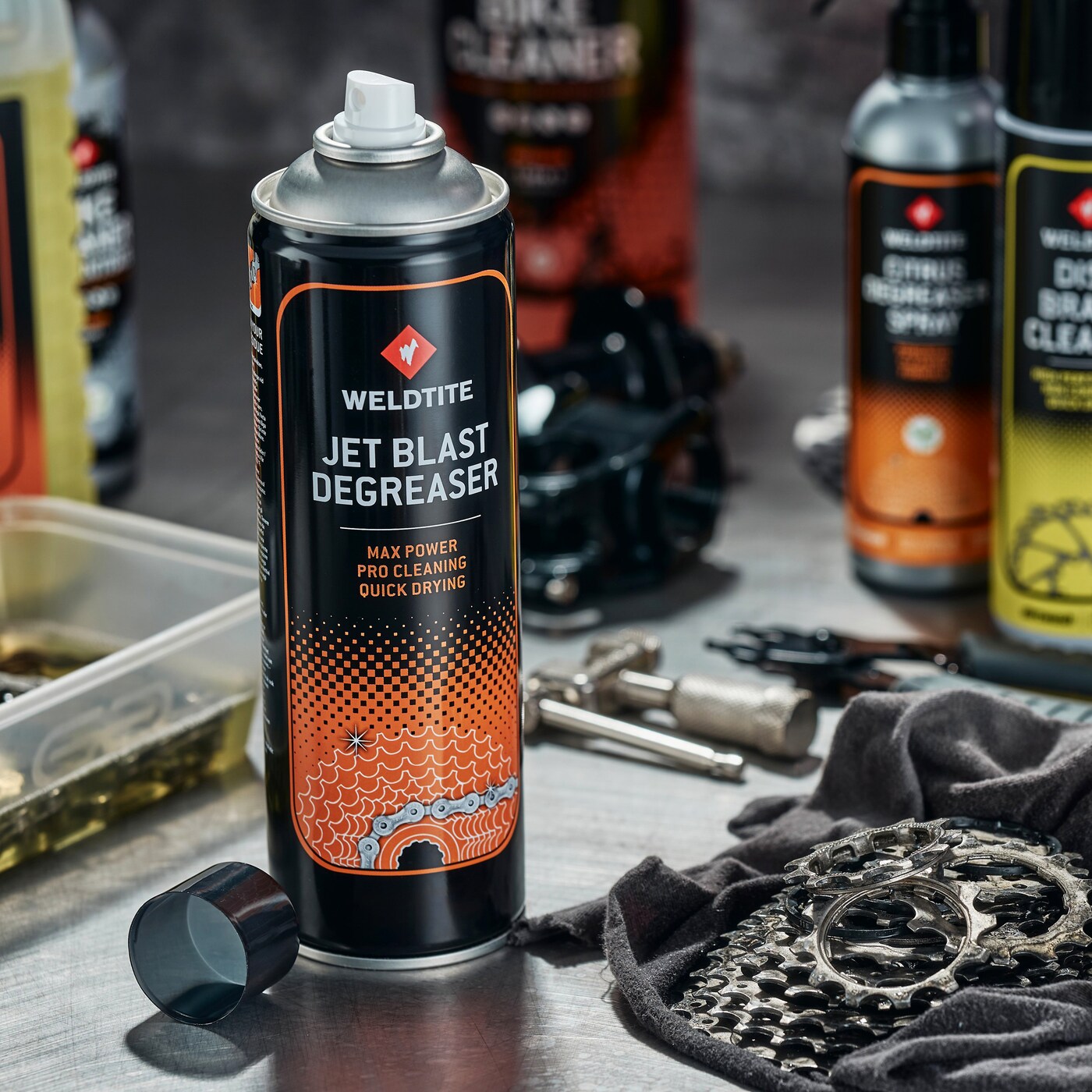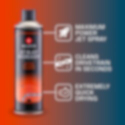 Én gigantisk sprang for sykkelrengjøring. Jet Blast avfettingsmiddel er den mest kraftfulle og effektive måten å rengjøre drivverket på. Maksimal kraft fra jet-sprayen gjør kort arbeid med å rengjøre bevegelige deler. Jet Blast tørker raskt, og gir deg en profesjonell rengjøring på sekunder.